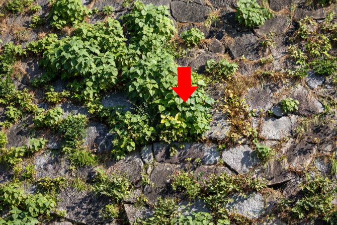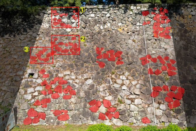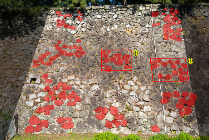 本丸西壁の三回目、今回は真ん中あたりを見てゆきましょう。