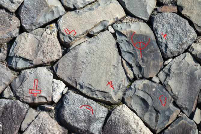 本丸西壁右側の刻印⑩⑪