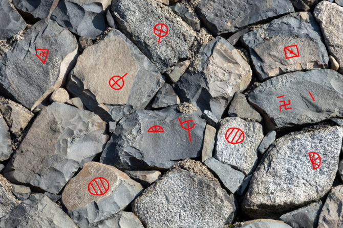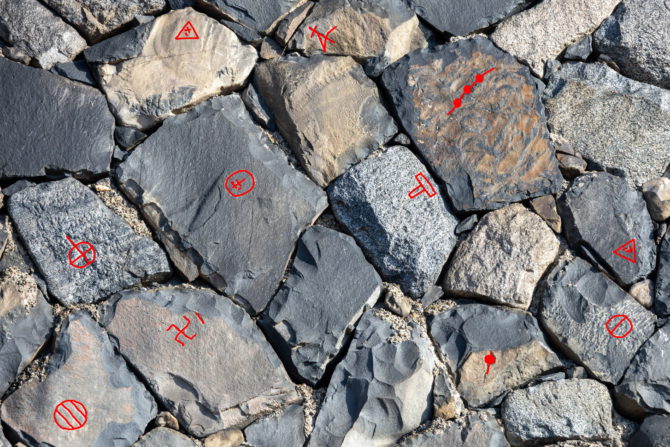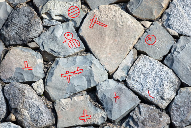 一、なんらかのマークが付けられた石を「刻印」や「刻紋」、