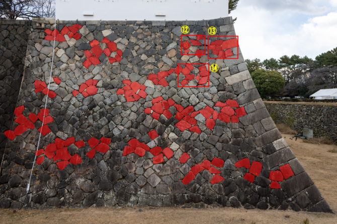 本丸西壁右側の刻印⑫⑬⑭