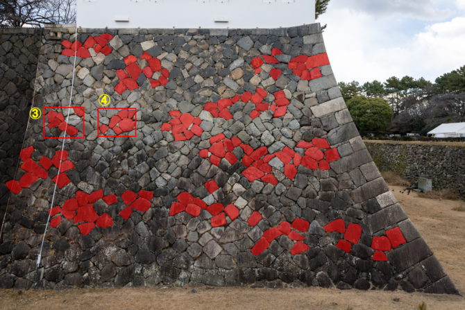 本丸西壁右側の刻印③④