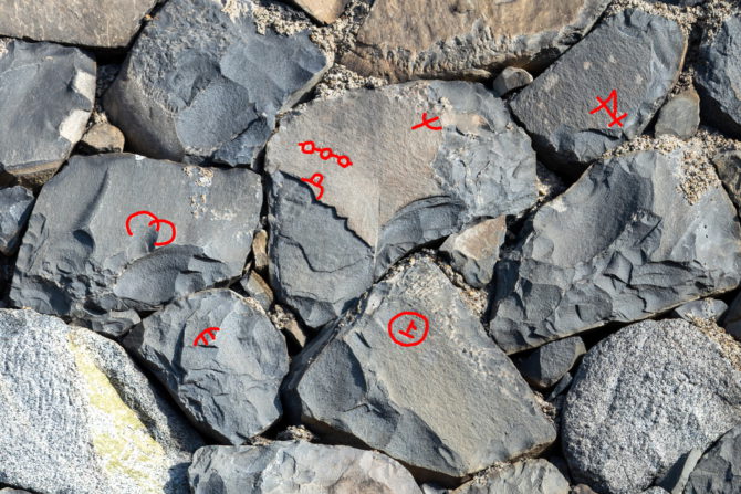 刻印がある石を赤く塗るとこんな感じ。