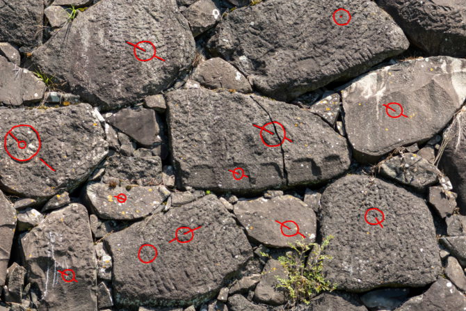 6回に分けてご紹介してきた本丸西壁の刻印たち。