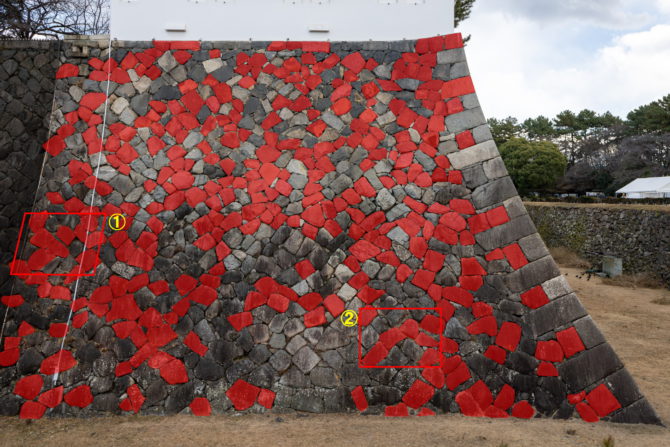 まずは本丸西壁の北側、細川忠興の担当箇所から。